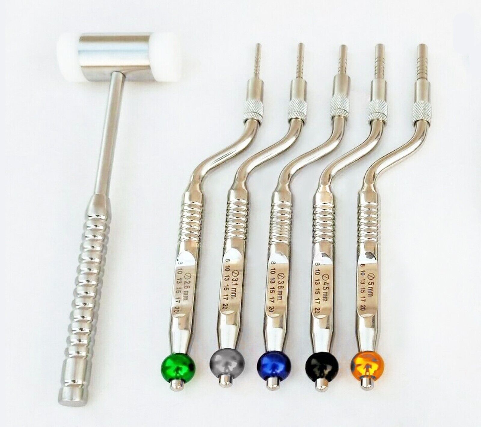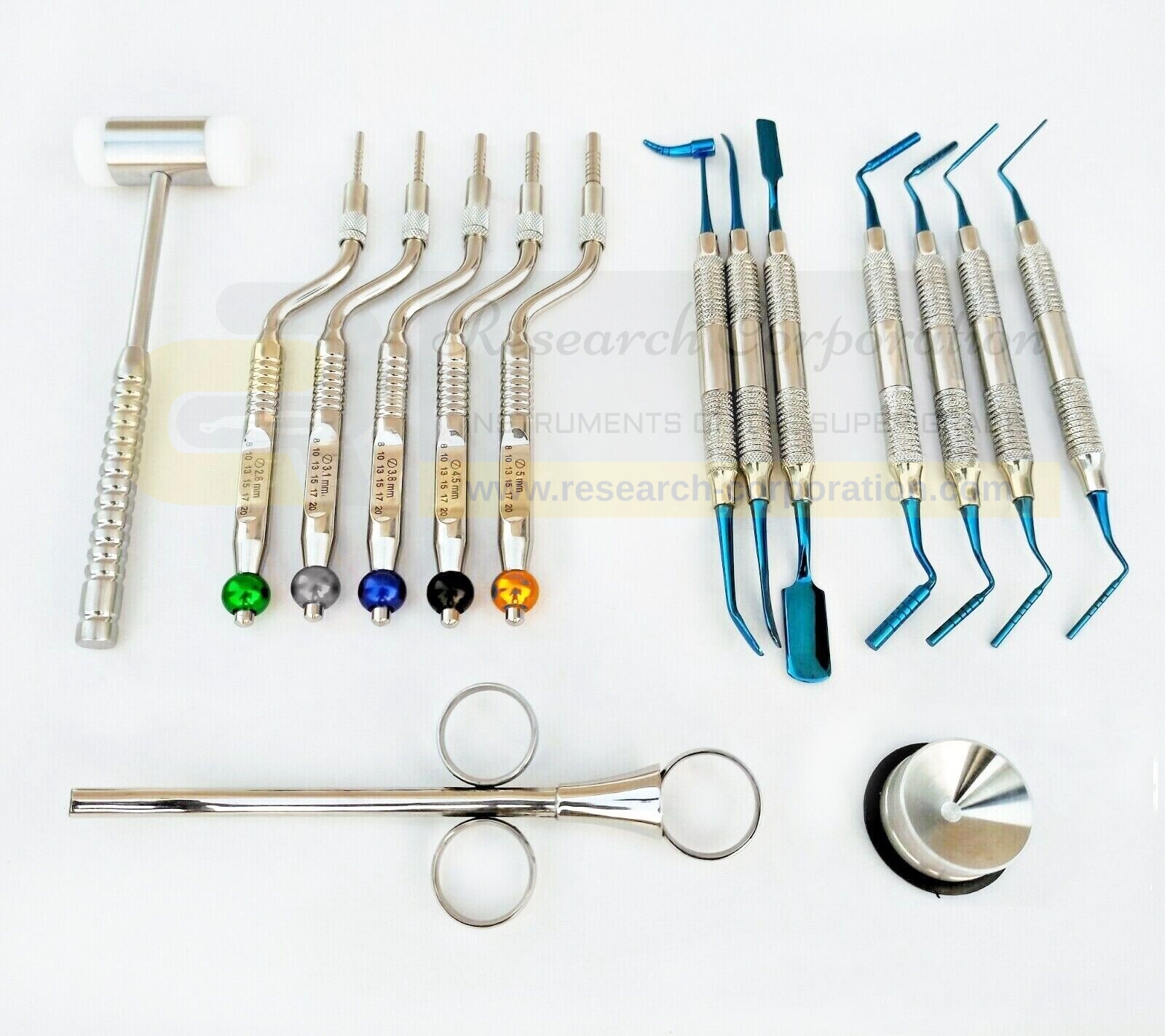 DENTAL SINUS LIFT OSTEOTOME OFFSET CONCAVE TIP SINUS LIFT IMPLANT BONE PREPARATION WITH BONE GRAFT PACKER CARRIER PLUGGERS AND MALLET 15 PCS INSTRUMENTS