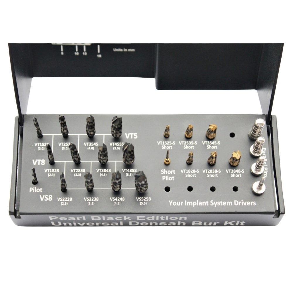 Pearl Black Universal Danesh Osseodensification Versah Burs Kit is an essential tool for dental professionals performing implant placements and sinus lift surgeries, enhancing both the precision and success rates of these procedures.